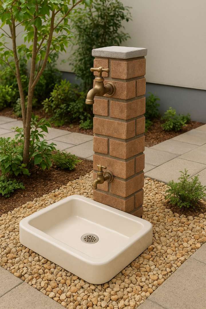 近年は、立水栓そのものが「外構のデザイン要素」として扱われることが増えています。木目調やレンガ調、モダンなシルバーなど、外観に合わせたスタイリッシュな立水栓を選べば、お庭の雰囲気をより引き立てることができます。