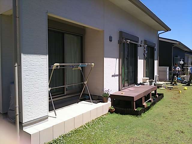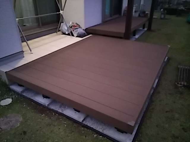 戸建て エクステリア工事 ウッドデッキ工事 印西市 人工木ウッドデッキ工事 施工事例 印西市にて人工木ウッドデッキ工事を行いました。掃き出し窓側は室内から出入りしやすい高さに、もう一方は既存のタイルデッキの高さに合わせて施工し、段差を抑えた使いやすいデッキ空間となっています。タイルデッキと一体的につながることで、より広く開放的なアウトドアスペースが完成しました。また、デッキ下には防草シートと砂利を敷き、雑草対策を行うことで、見えない部分のメンテナンス性にも配慮しています。 Before navigate_next After 場所 千葉県印西市 前の施工事例 戸建て 栄町 立水栓工事 施工事例 次の施工事例 戸建て 【神栖市】高強度な折板カーポート施工事例