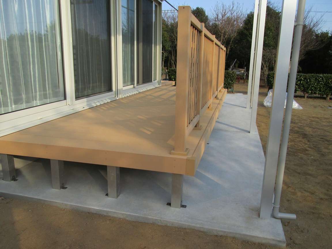 神栖市のお客様より「洗濯物を干す際、掃き出し窓からの出入りを楽にしたい」とのご相談をいただき、人工木ウッドデッキの設置工事を行いました。