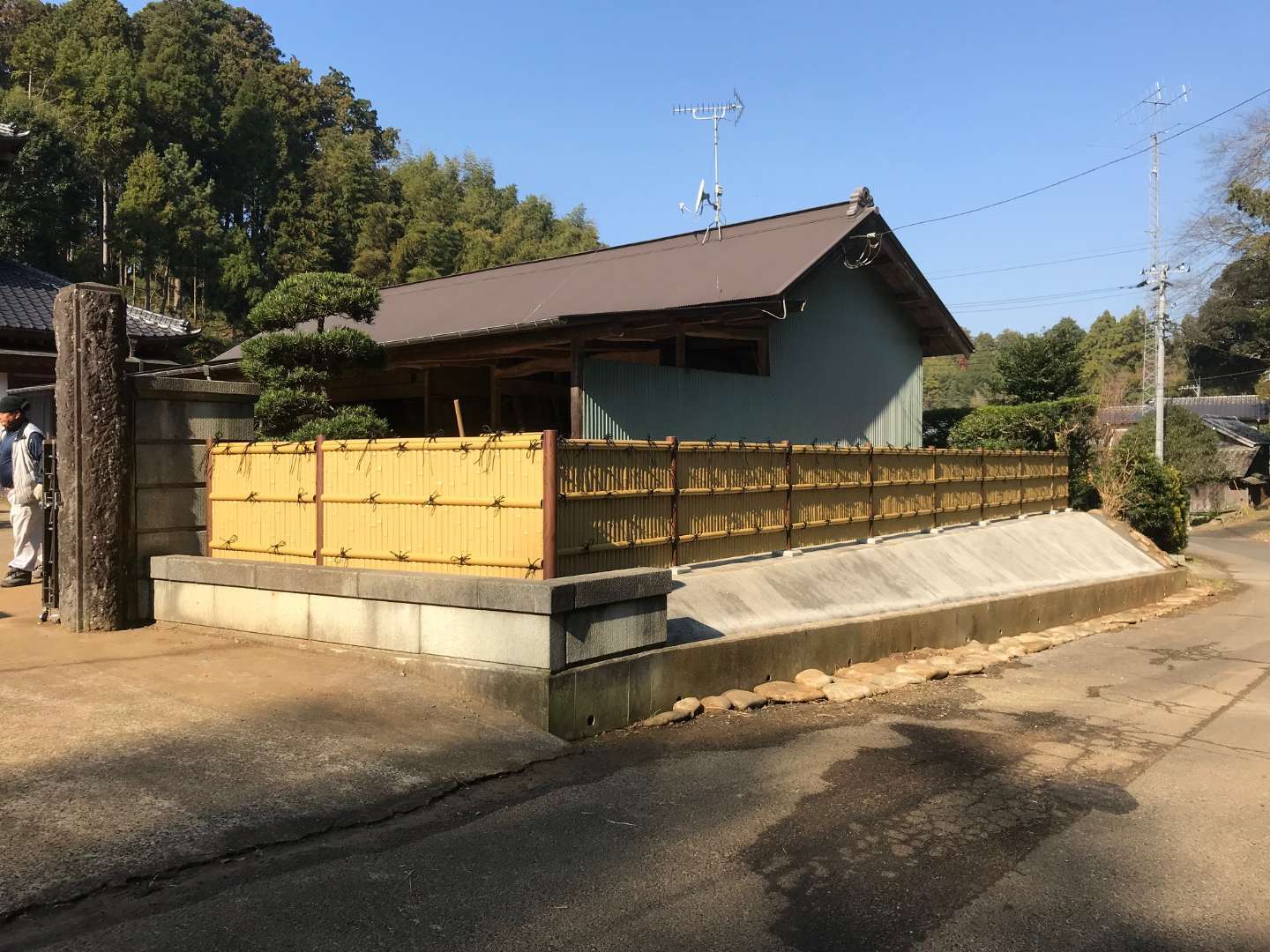 工事内容: 生垣撤去、人工竹垣設置、法面コンクリート打設、雑草対策