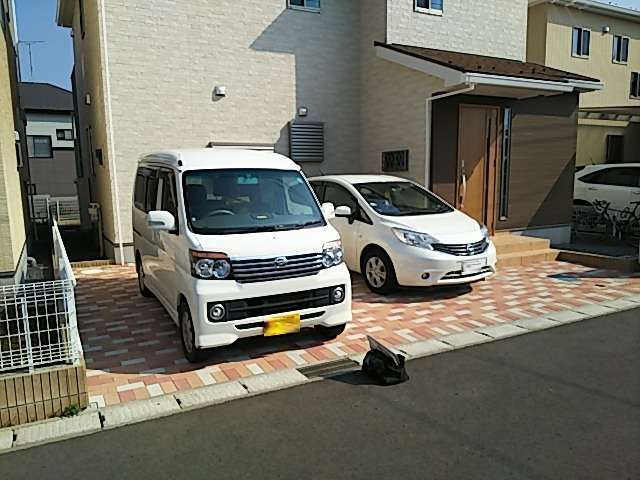 既存の駐車場が美しいインターロッキング(舗装ブロック)だったため、柱を建てる際は一度丁寧に取り外す必要がありました。工事後はできる限り自然な状態に復旧しています。