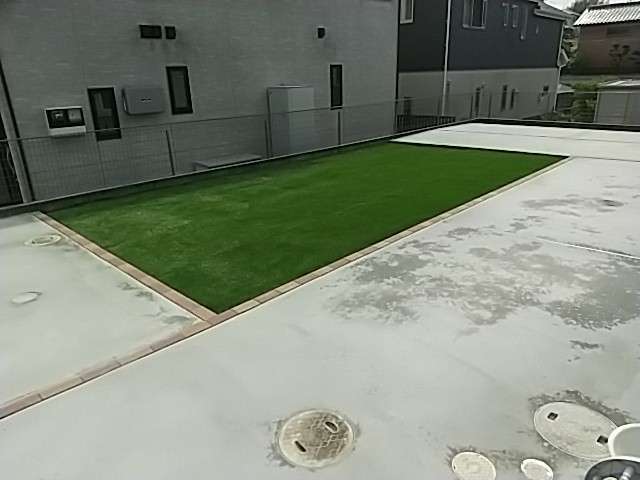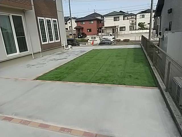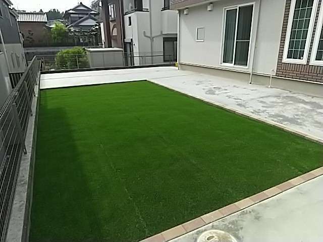 千葉県成田市にて、お庭の人工芝と土間コンクリートの施工を行いました。