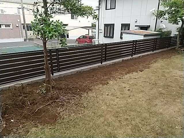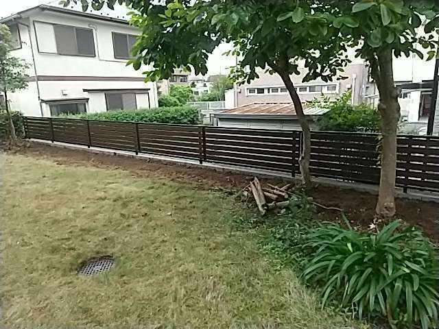 成田市にて、古くなった天然木フェンスの撤去と、新しい化粧ブロック+目隠しフェンスの設置工事を行いました。